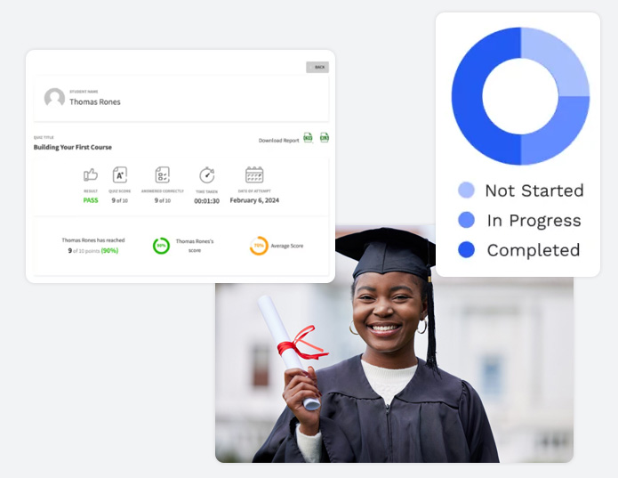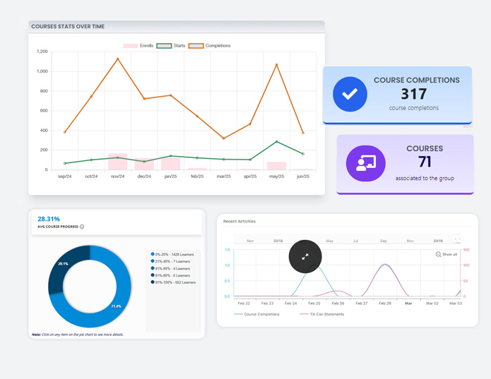 Track KPIs that matter. Measure participation, completion rates, and skills development ROI through powerful visual dashboards.