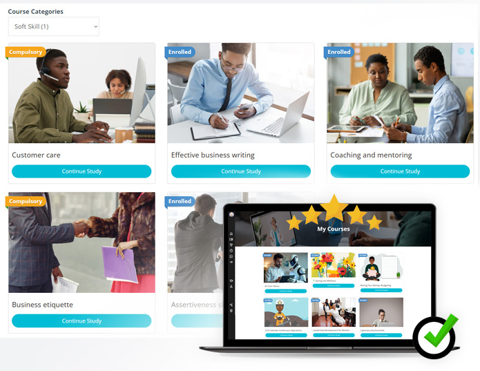 Boost workplace performance with ready-to-use online courses. Covering communication, leadership, teamwork, and more – mapped to your goals.